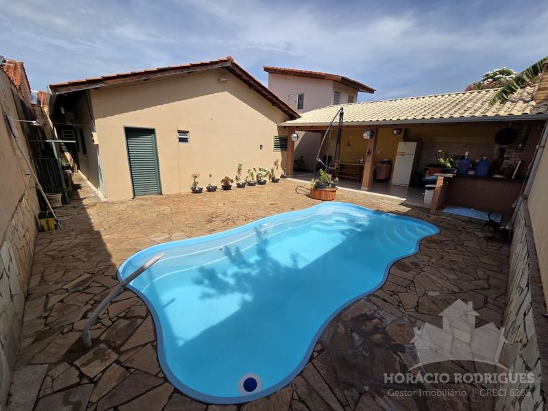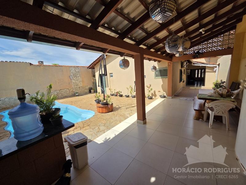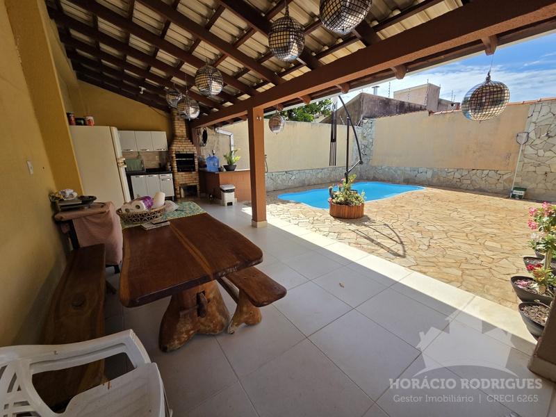 Casa com 03 quartos, sendo 02 suítes, 01 com closet, todos com armários, cozinha, wc, 02 salas, varanda na frente que comporta 04 veículos, toda a casa é de laje, edícula com churrasqueira, piscina, ESCRITURADA, ACEITA FINANCIAMENTO – Troca por casa em condomínio ou apartamento.